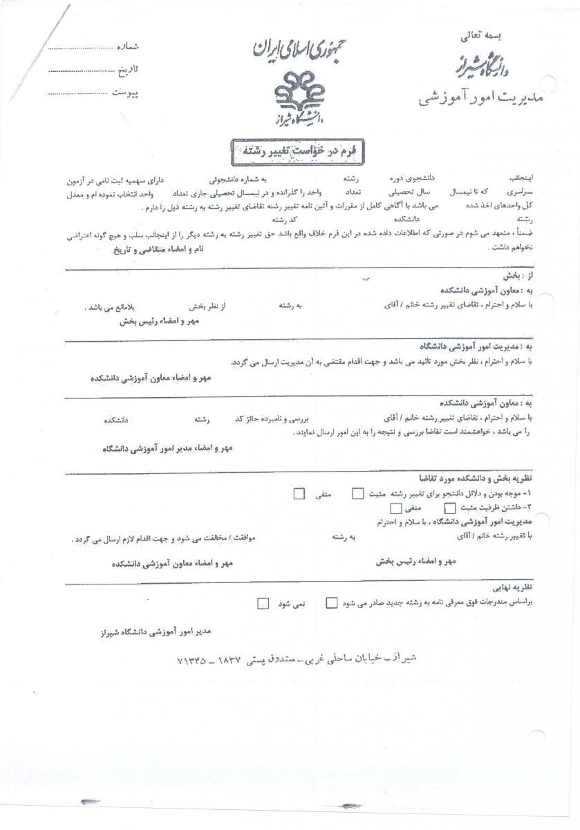 - فرم درخواست انتقال دائم توأم با تغییر رشته